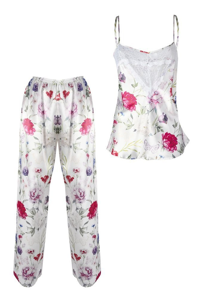 Satynowy komplet FLOWERS składający się z koszulki oraz długich spodni.