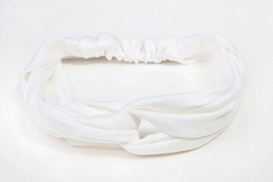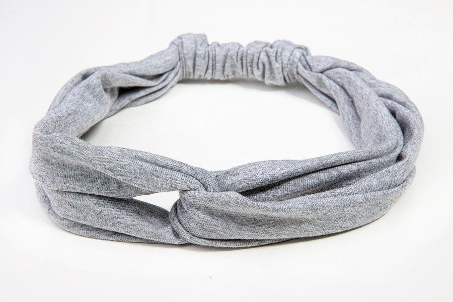 Bawełniana opaska do włosów posiada wszytą gumkę, dzięki czemu dostosuje się do kształtu i rozmiaru głowy. Materiał na górze układa się w modny węzeł.