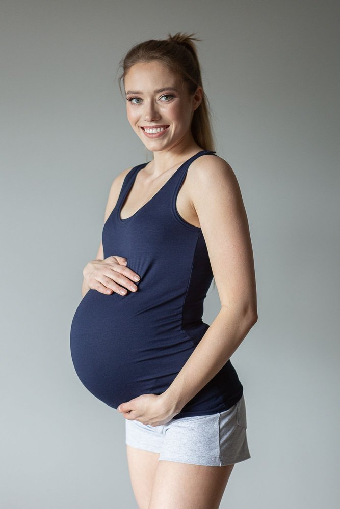 Top bez rękawów wykonany z wysokiej jakości dzianiny wiskozowej przeznaczony dla kobiet w ciąży i karmiących piersią. Odpinana na napy góra pozwala wygodnie karmić naszego malucha a dzięki elastyczności materiału pod bluzką zmieści się każdej wielkości ciążowy brzuszek .