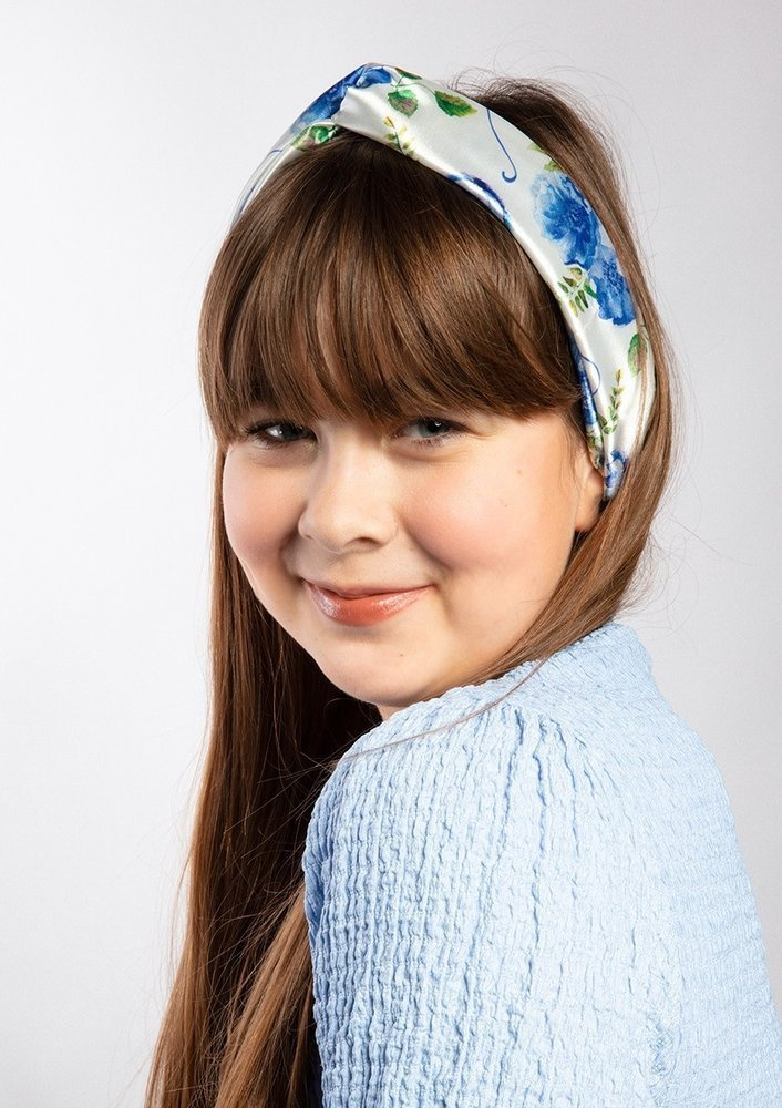 Bawełniana opaska do włosów posiada wszytą gumkę, dzięki czemu dostosuje się do kształtu i rozmiaru głowy. Materiał na górze układa się w modny węzeł.