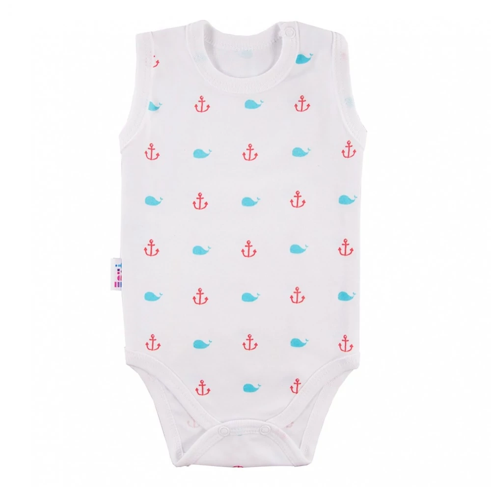 Body ramiączko niemowlęce z kolekcji "Little Sailor" uszyte z miękkiej i przyjemnej w dotyku drukowanej dzianiny bawełnianej.