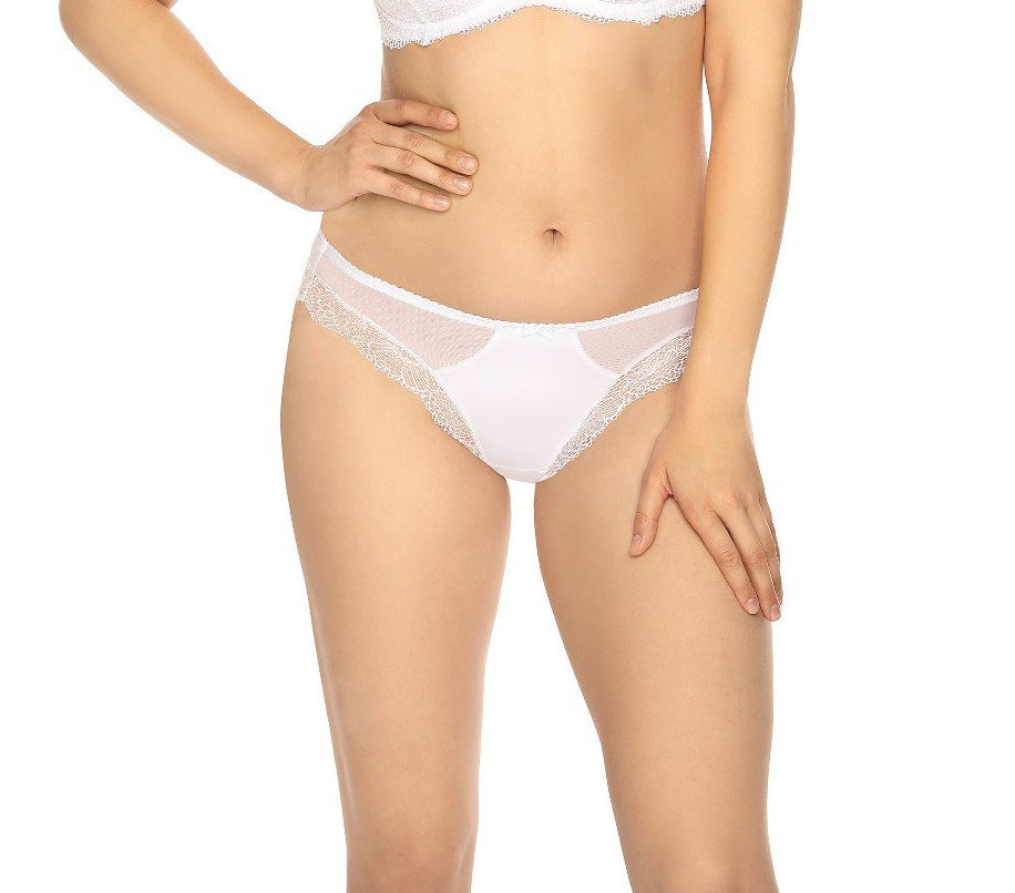 Efektowne figi damskie o pełnym kroju. Wykonane z mikrofibry w połączeniu z delikatną koronką o kwiatowym motywie.