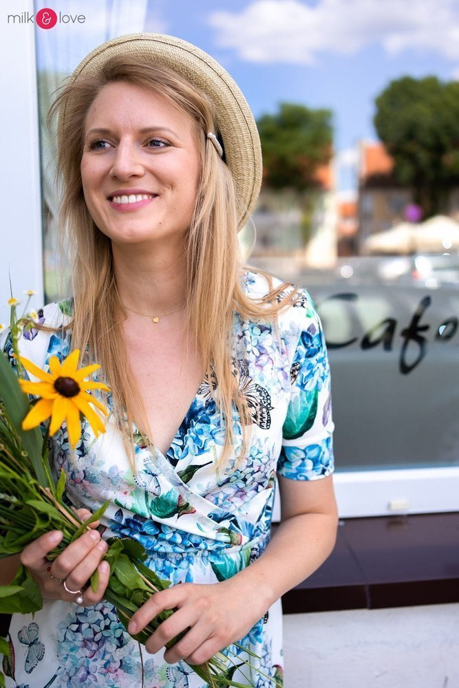 - Kopertowy dekolt umożliwia wygodne karmienie piersią,