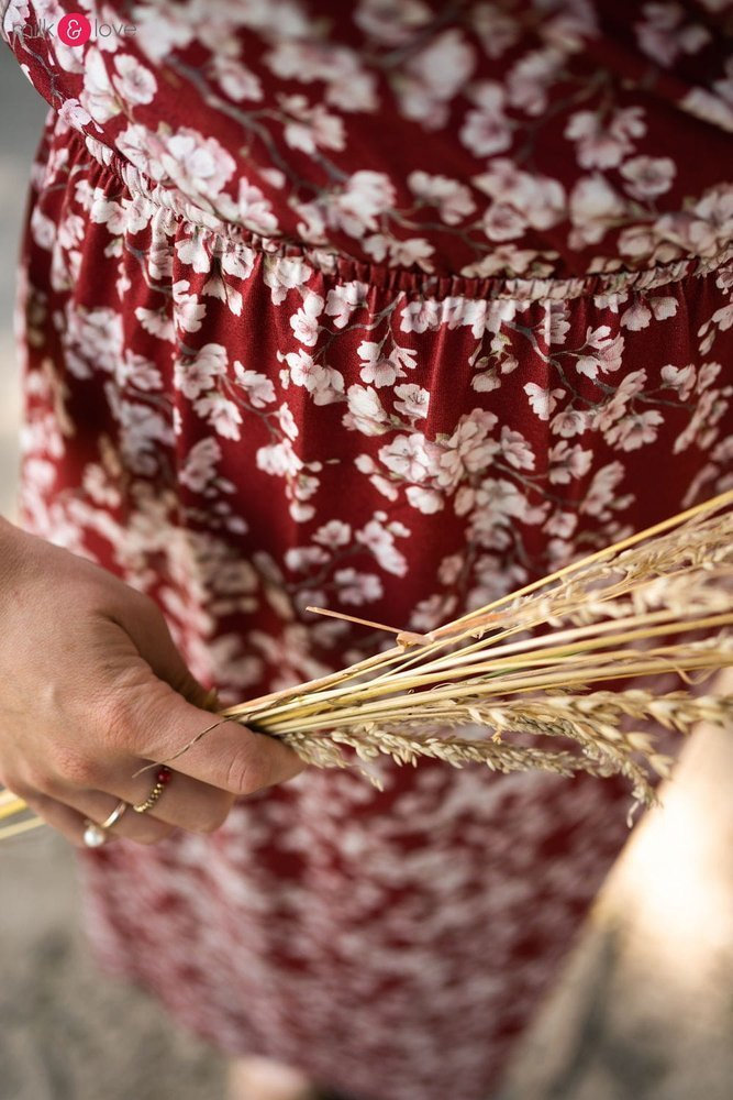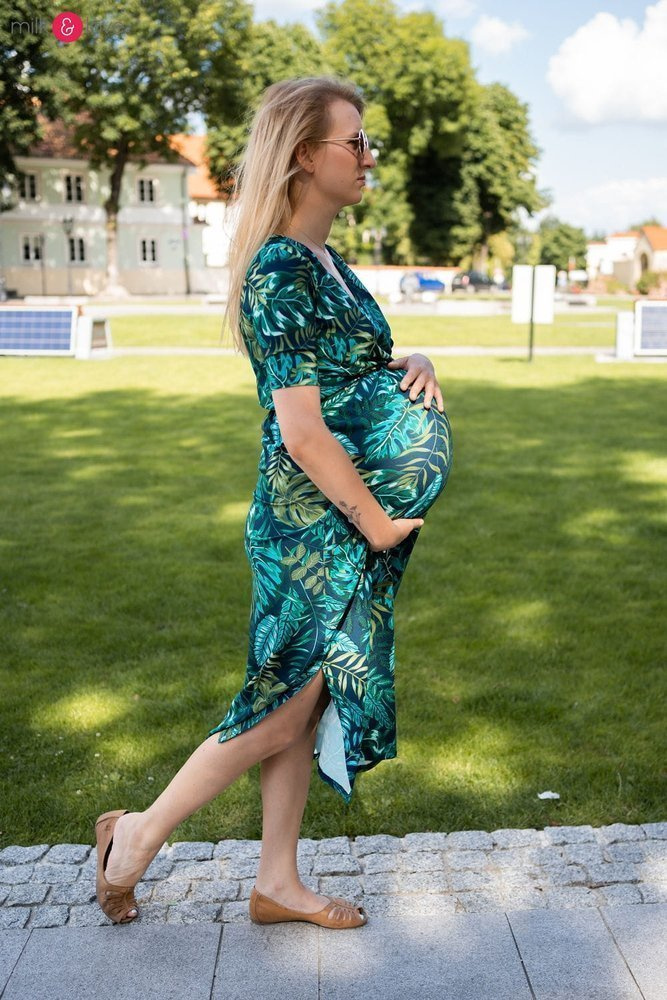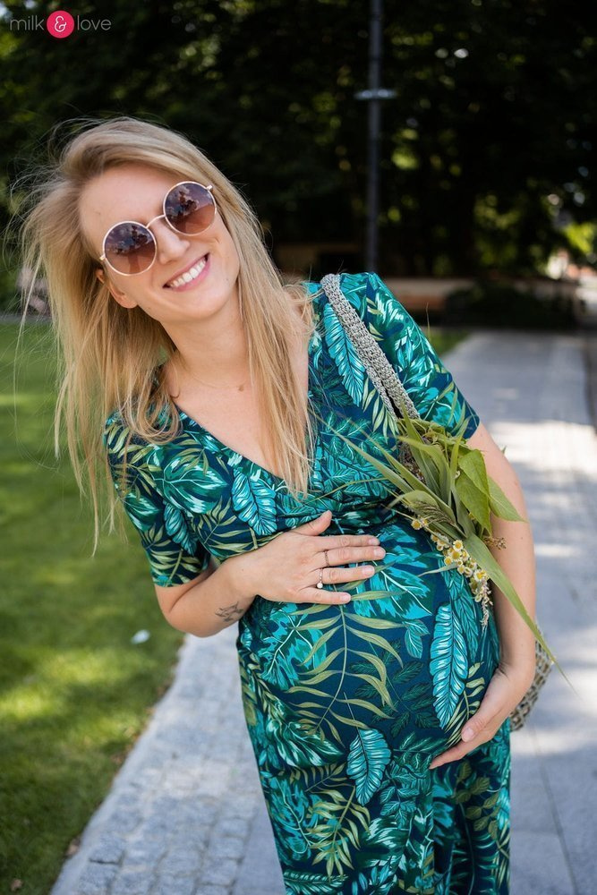 - Elegancka sukienka ciążowa wykonana z lekkiej wiskozy,