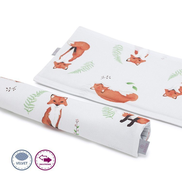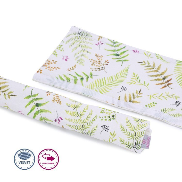 Wykonany z jednej strony z najwyższej jakości bawełny, która nie spiera się, "nie mechaci" i nie traci swoich właściwości nawet po wielokrotnym praniu, druga strona to bajecznie mięciutki Velvet. W środku wypełniony antyalergiczną, lekką, silikonową włókniną zapewniającą miękkość i ochronę przed twardym pałąkiem/barierką wózka.