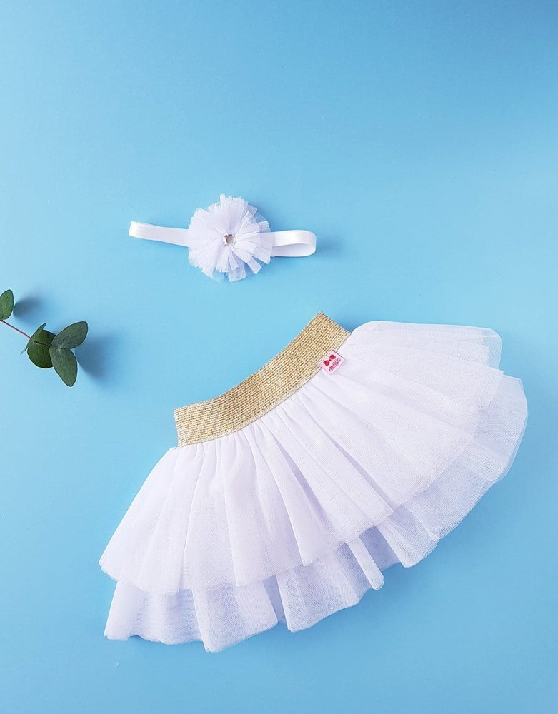 1826T Santa Spódniczka z tiulu ze złotą gumką Marija - biały