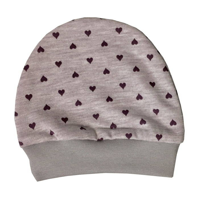 Bawełniana czapka niemowlęca ozdobiona nadrukiem w serduszka. Czapeczka dobrze przylega do główki, ale jej nie uciska. Zapewnia dziecku ochronę uszu przed chłodem podczas wiosenno-jesiennych spacerów. Czapeczka będzie doskonałym dopełnieniem stylizacji ubranek Serduszko. Kompletując garderobę dziecka warto o niej pamiętać.