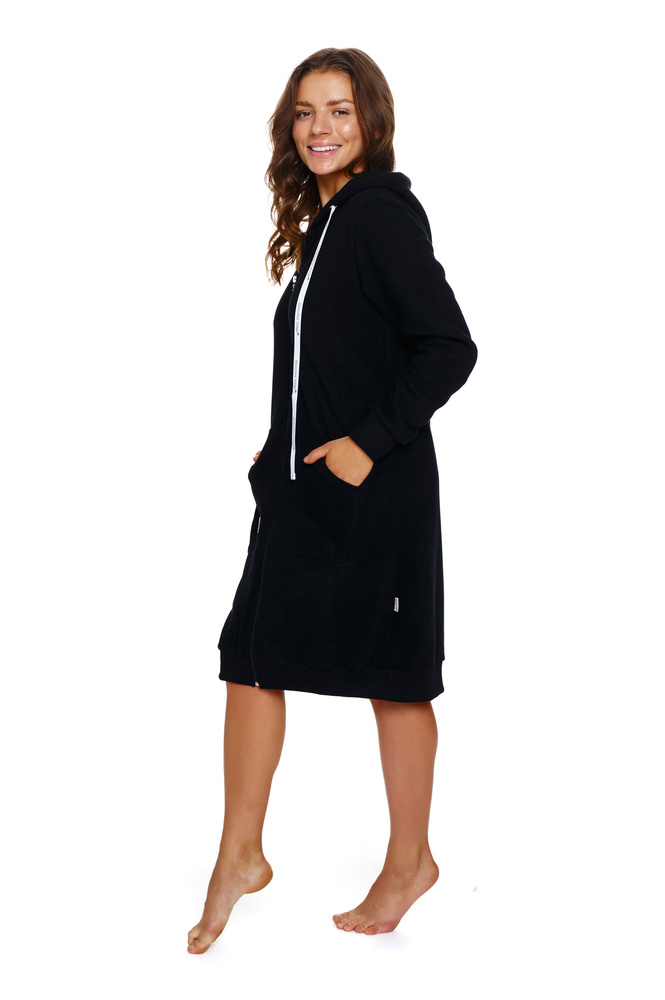 Miękki i przyjemny w dotyku szlafrok damski z praktycznym zapięciem na zamek. Bardzo ciepły i funkcjonalny model, wykonany z miękkiej bawełny. Model posiada kieszenie po bokach i kaptur. Chcesz poczuć się modnie i stylowo? Jest to szlafrok dla Ciebie. Wygoda i delikatność sprawi że poranna kawa będzie smakowała wybornie.