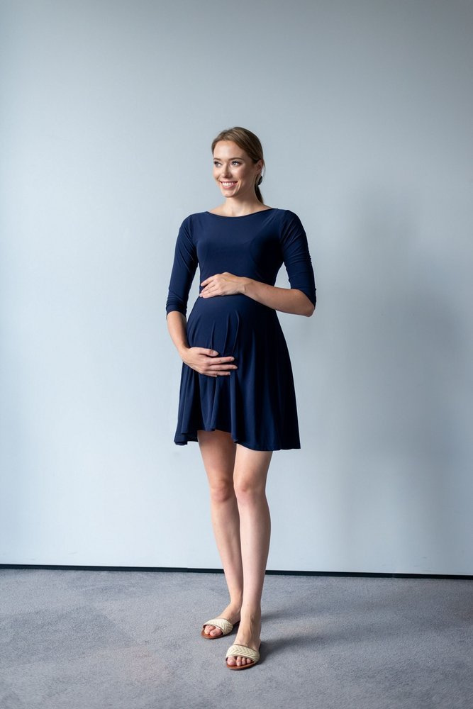 Zwiewna sukienka z rękawem 3/4 nadaje się dla każdego. Zarówno kobiety w ciąży , karmiące piersią jak i kobiety które ciąże mają już za sobą lub ją dopiero planują świetnie będą wyglądać w tej sukience. Rozkloszowany krój sprawia że sukienka na ciążowym brzuchu świetnie się układa, nie krępuje ruchów i nie opina się. Krój sukienki przystosowany jest do wygodnego karmienia piersią.
