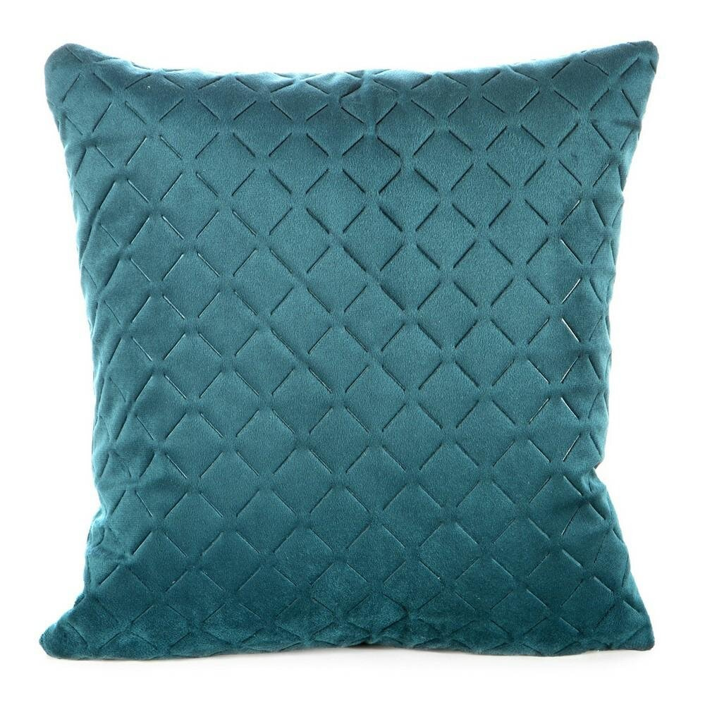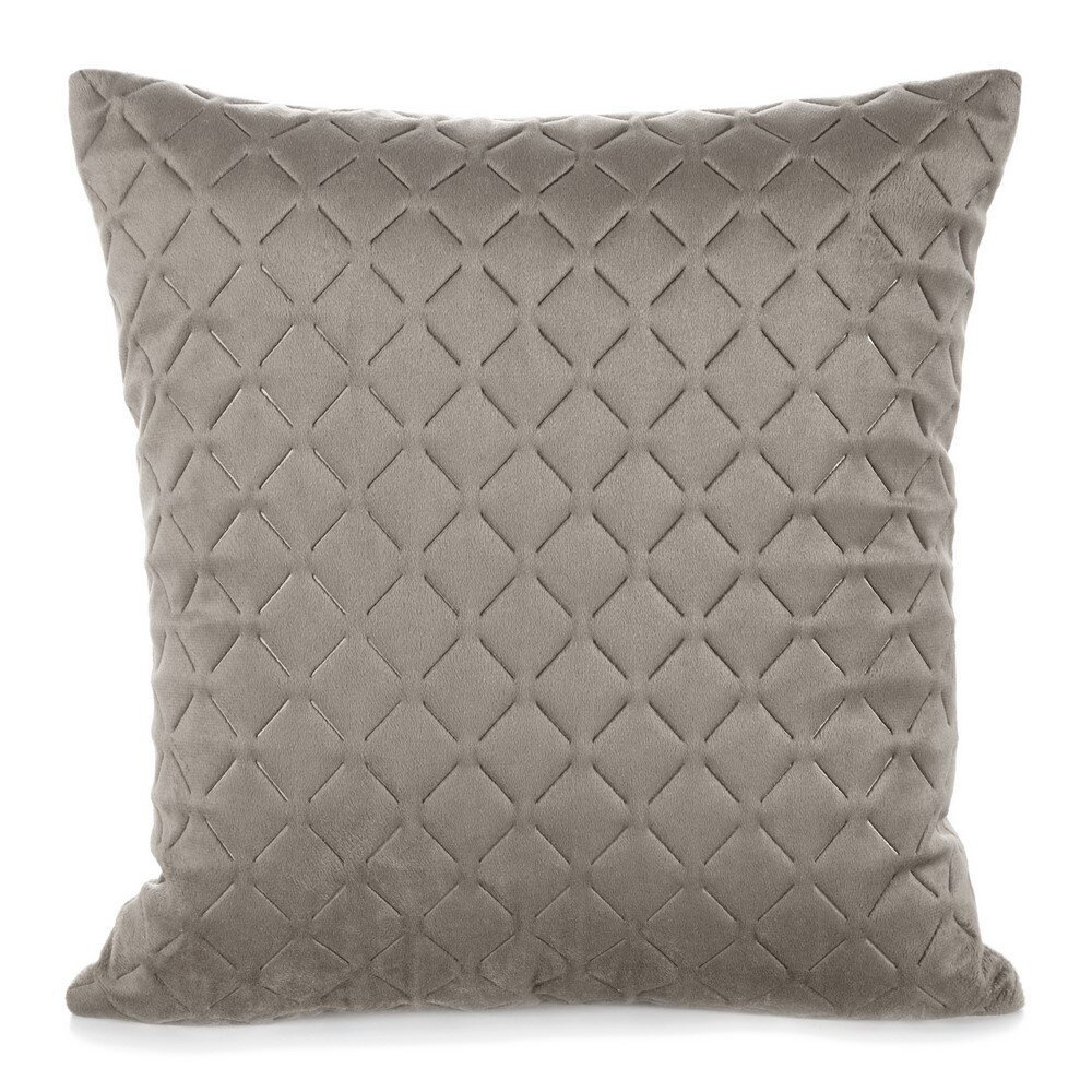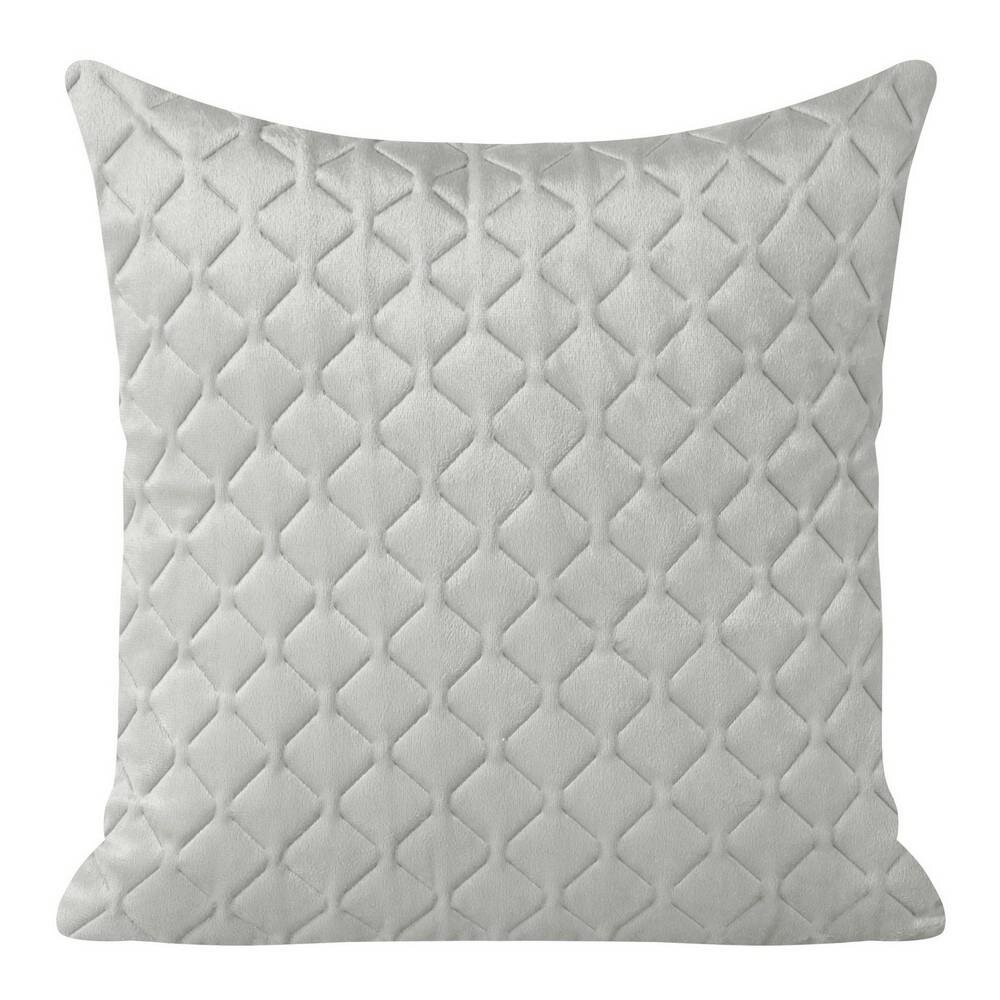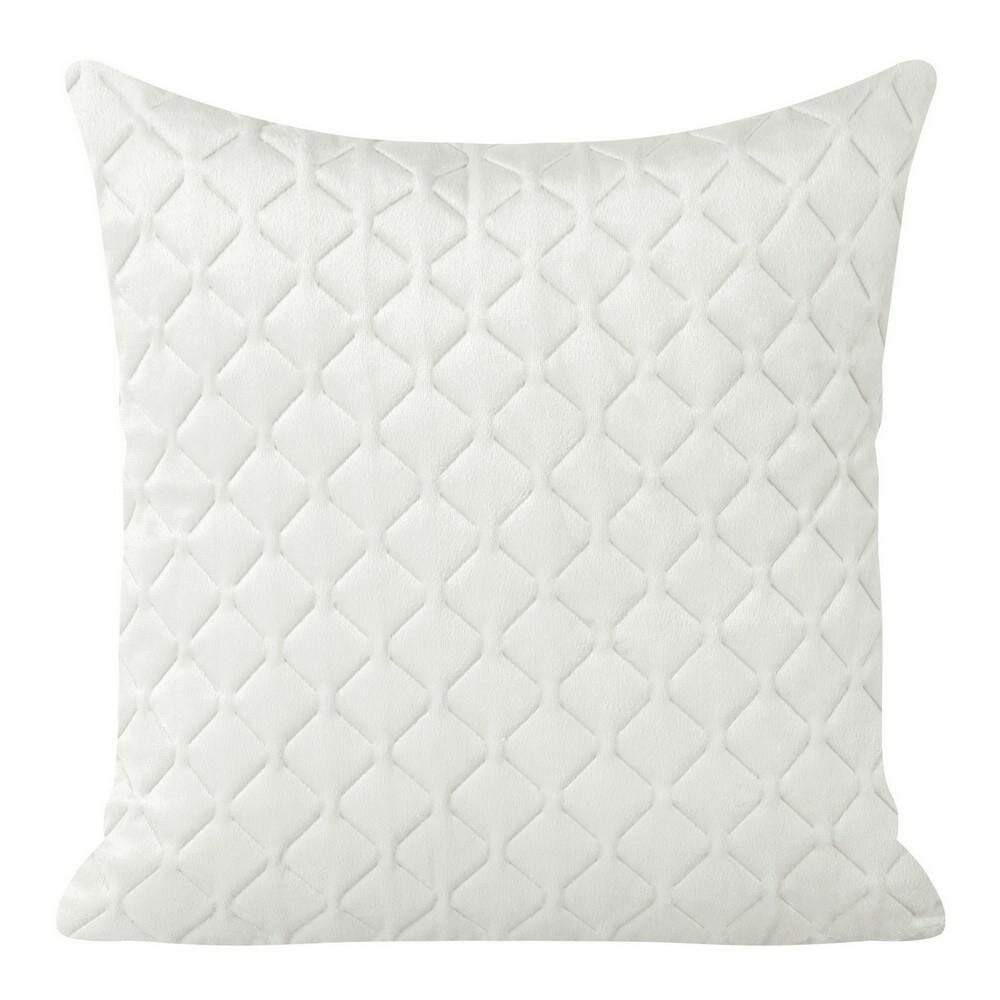 Poszewka dekoracyjna wykonana została z miękkiego weluru zdobionych geometrycznym wzorem uzyskanym metodą pikowania hot press. Wytłaczany za pomocą prasy na gorąco geometryczny wzór zwiększa wytrzymałość tkaniny. Idealnie pasuje do wszystkich wnętrz.