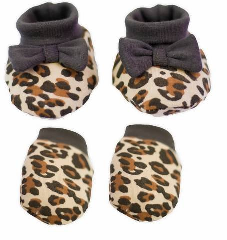 Komplet rękawiczek i bucików, będący idealnym i zarazem praktycznym uzupełnieniem ubranek z kolekcji w tej kolorystyce. Uszyty ze 100% bawełny posiadającej certyfikat Oeko-Tex Standard 100 Tekstylia godne zaufania. Modele mają wszyty bezuciskowy ściągacz, rękawiczki dodatkowo zabezpieczają noworodka przed zadrapaniem się.
