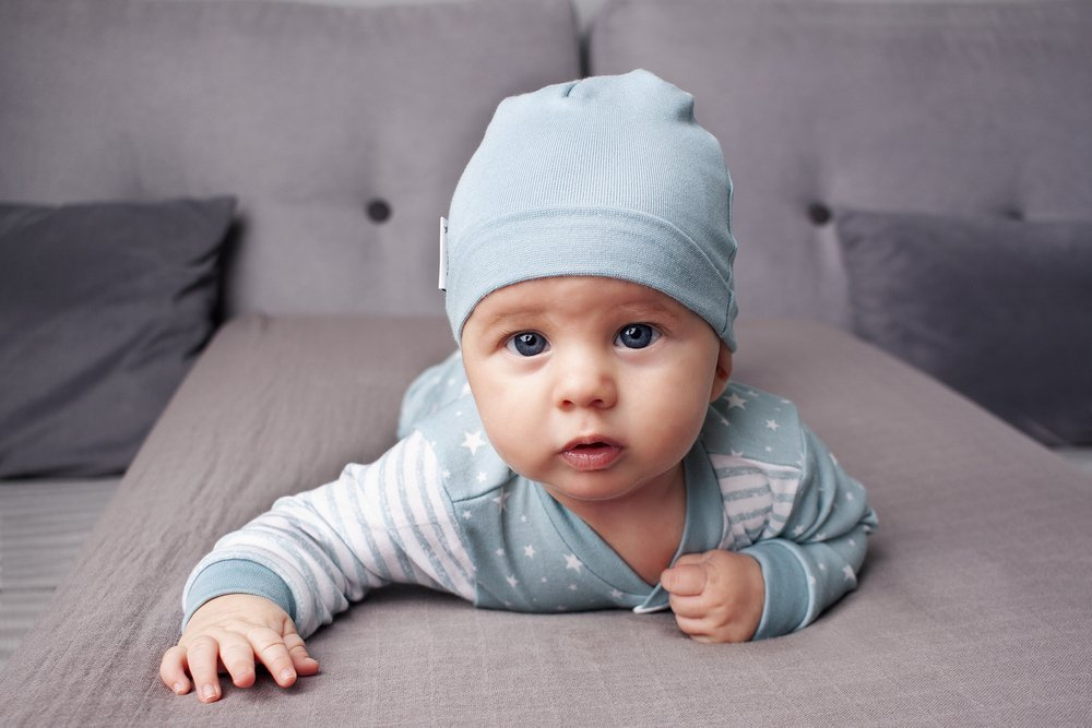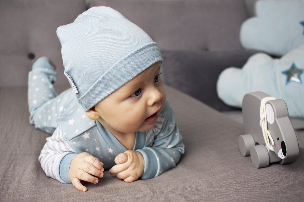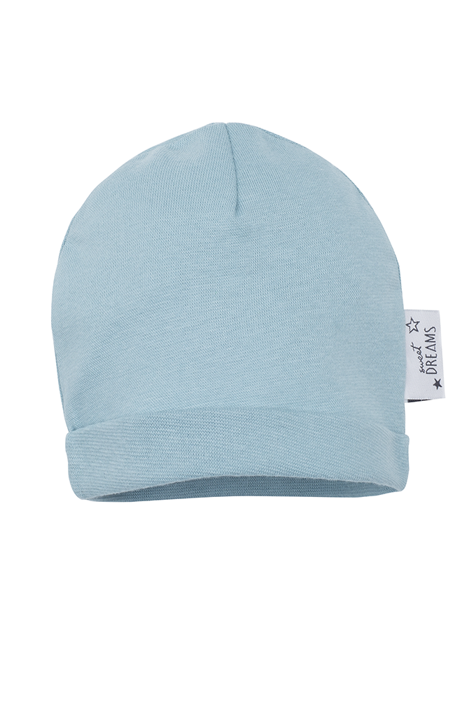 Turkusowa czapka niemowlęca z przyjemnej w dotyku bawełny. Dobrze przylega do główki dziecka, ale jej nie uciska. Czapka zapewni mu odpowiednią ochronę uszu przed chłodem podczas spacerów, a także po kąpieli. Będzie idealnym uzupełnieniem każdej stylizacji z kolekcji Sweet Dreams.