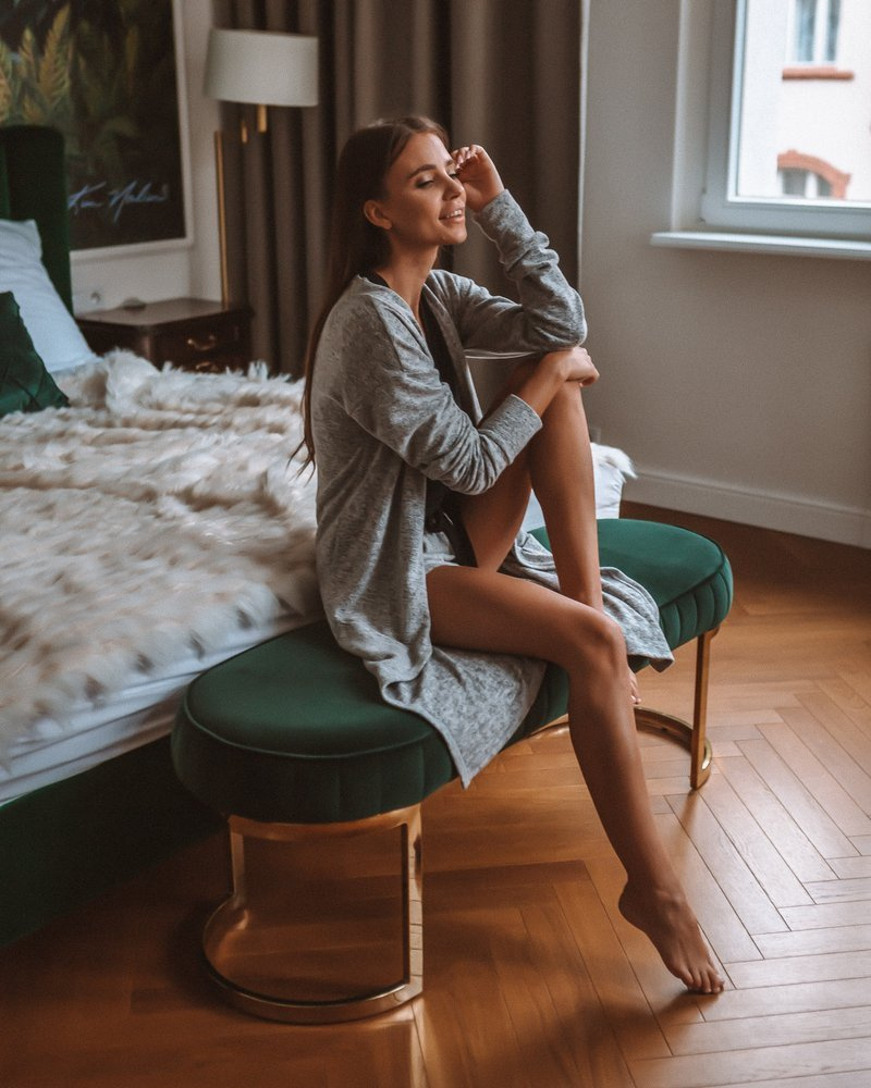 Wygodny, szlafrok damski. Wykonany z wysokiej jakości wiskozy. Model do połowy uda, o prostym kroju z długim rękawem. Na wysokości bioder posiada dwie kieszonki. Bardzo wygodny fason, delikatnie dopasowany do ciała. Spodoba się kobietom, które uwielbiają delikatność i swobodę.