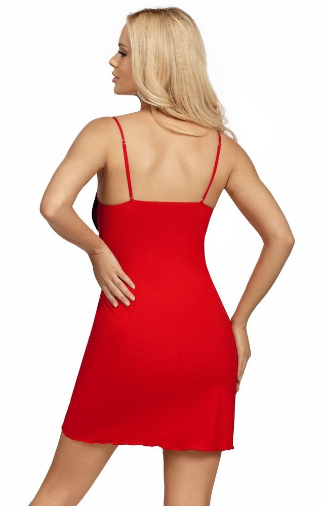 Efektowna koszulka nocna na wąskich ramiączkach z regulacją, wykonana z delikatnej wiskozy. Dekolt koszulki zdobi koronka o kwiatowym motywie