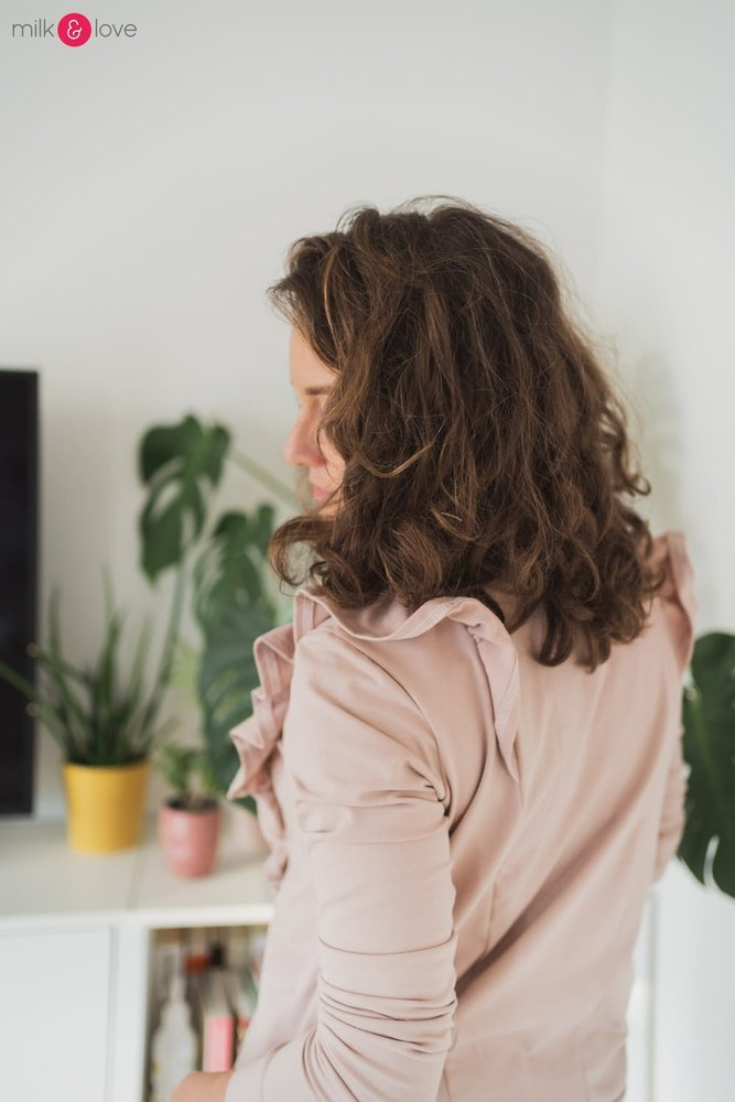 - Luźny krój bluzki, w którym będziesz się swobodnie czuć po porodzie