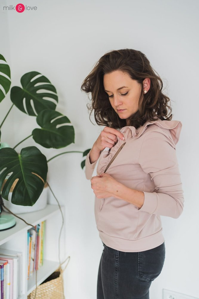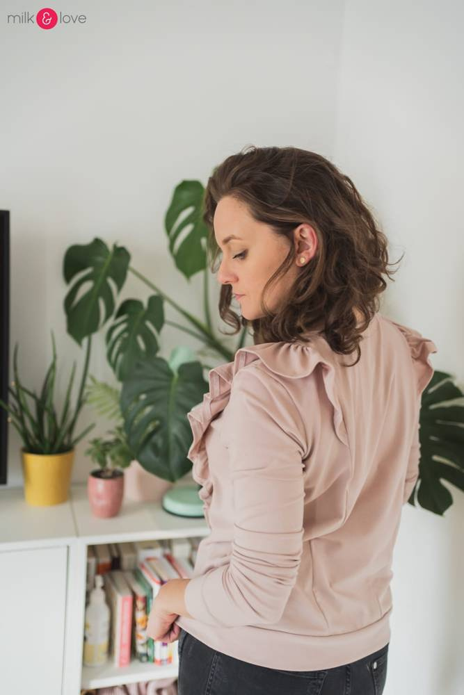 - Zamki ukryliśmy w szwie pod falbanką, dzięki czemu wygodnie i dyskretnie nakarmisz maluszka