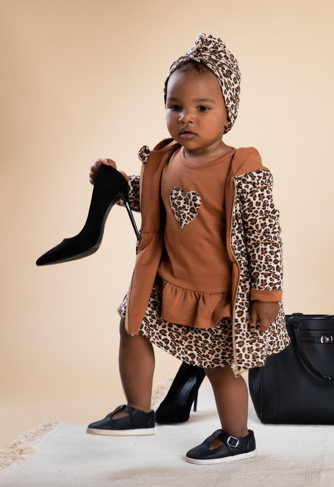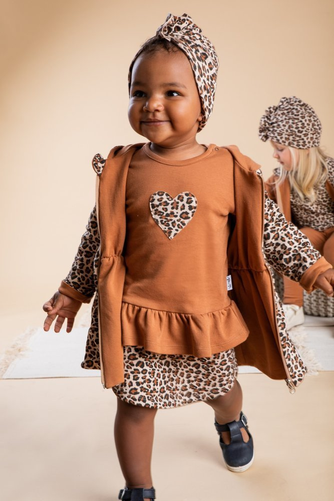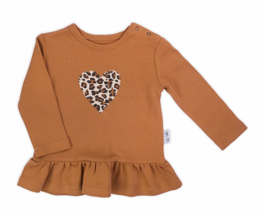 Bluzka dla dziewczynki, ozdobiona aplikacją serduszka. Nadruk wykonano bezpieczną metodą farb wodnych. Tunikę można dowolnie łączyć z innymi ubrankami z kolekcji Mia, tworząc unikatowe stylizacje.