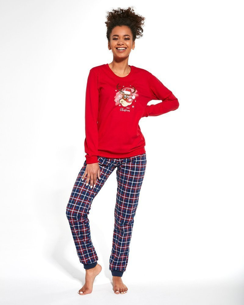 Wygodna piżama chłopięca z wysokiej jakości wyjątkowo miłej i miękkiej bawełny. Koszulka z długim rękawem, przód ozdobiony zabawnym kolorowym nadrukiem z reniferem. Spodnie długie, w kratkę. Dekolt, mankiety, dół koszulki i nogawki zakończone wygodnym ściągaczem.