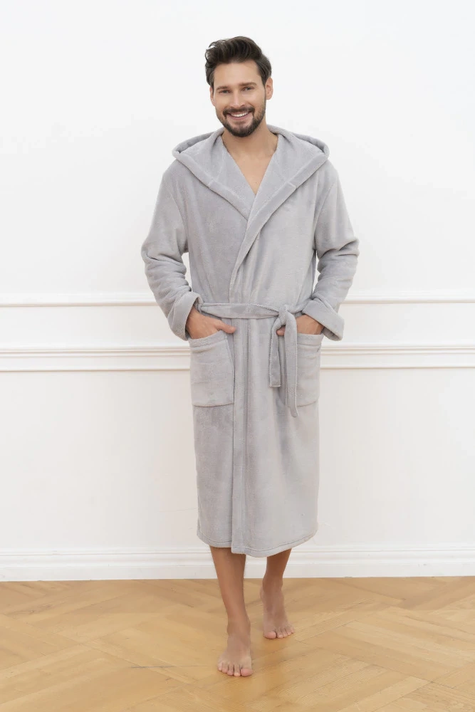 Mimas Szlafrok męski z kapturem Italian Fashion- szary