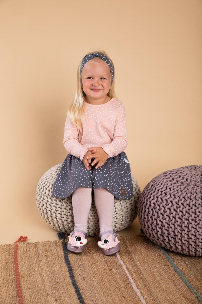 Grafitowa spódniczka dziewczęca z 100% bawełny. Ozdobna brązową naszywką, która dodaje jej uroku i zwiewności. Idealna na wiosnę i lato. W pasie wszyta jest gumka, która utrzymuje ubranko w odpowiednim miejscu, ale nie uciska w brzuszek. Luźny fason nie krępuje ruchów dziecka i zapewnia komfort noszenia. Spódniczkę można dowolnie łączyć z innymi ubrankami z kolekcji Rainbow, tworząc unikatowe stylizacje. Warto o niej pamiętać kompletując letnią garderobę.