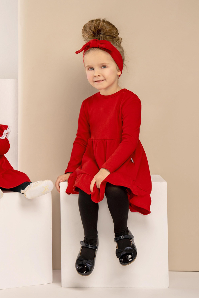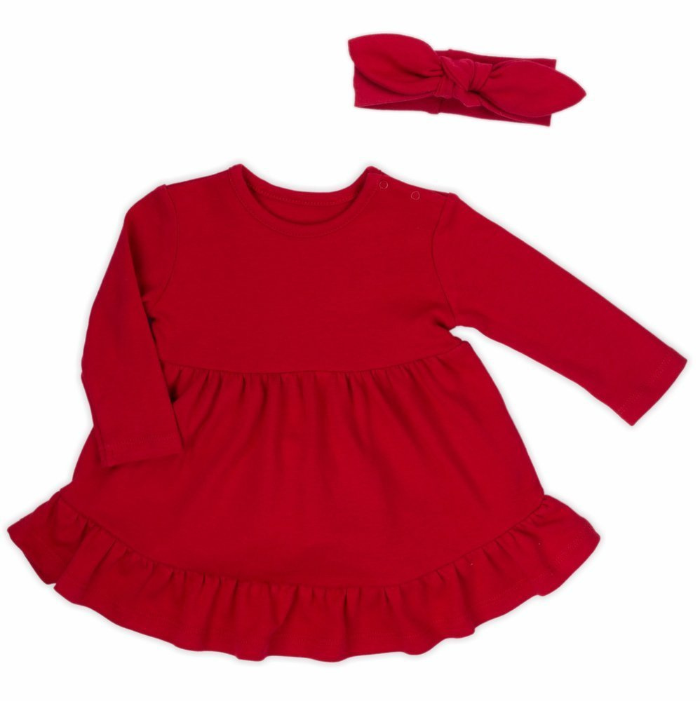 Dziewczęca sukienka w kolorze czerwonym lub granatowym . Luźny fason nie krępuje ruchów. Sukienka zapinana jest na ramionach, co znacznie ułatwia ubieranie i rozbieranie maluszka. Zatrzaski wykonano z antyalergicznego, bezpiecznego tworzywa bez dodatku niklu. Doskonałym uzupełnieniem dla sukienki będzie opaska z kolekcji Magia Świąt.