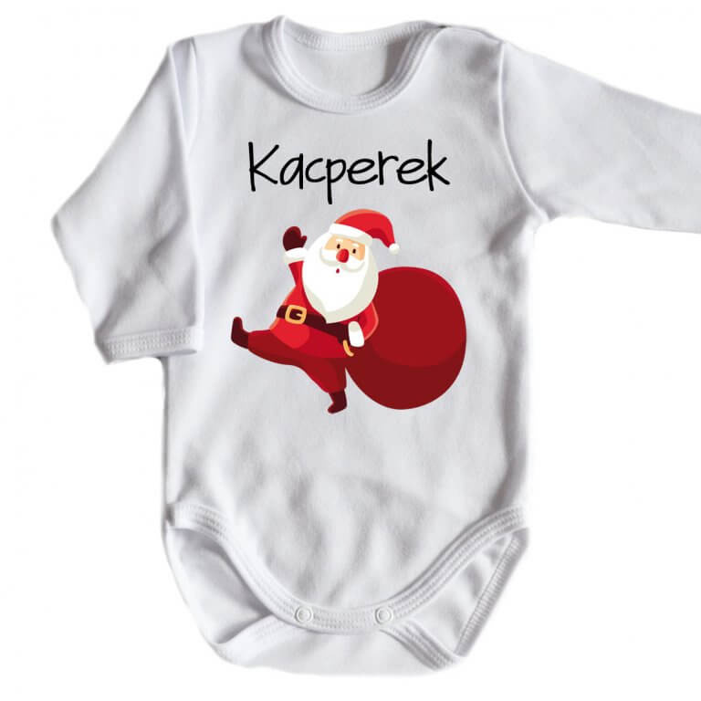 "Mikołaj z workiem + dowolne imię" Body długi rękaw biały