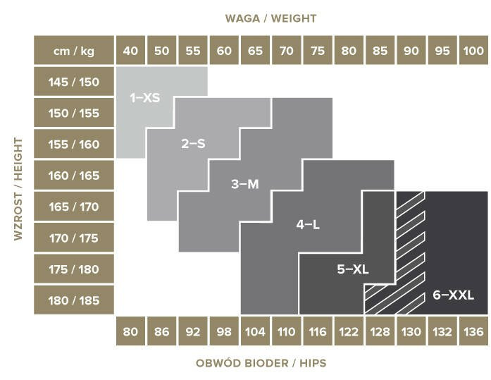 Rajstopy damskie wzorowane 20 den, z zaznaczoną częścią majteczkową oraz bez zaznaczonej części palcowej.