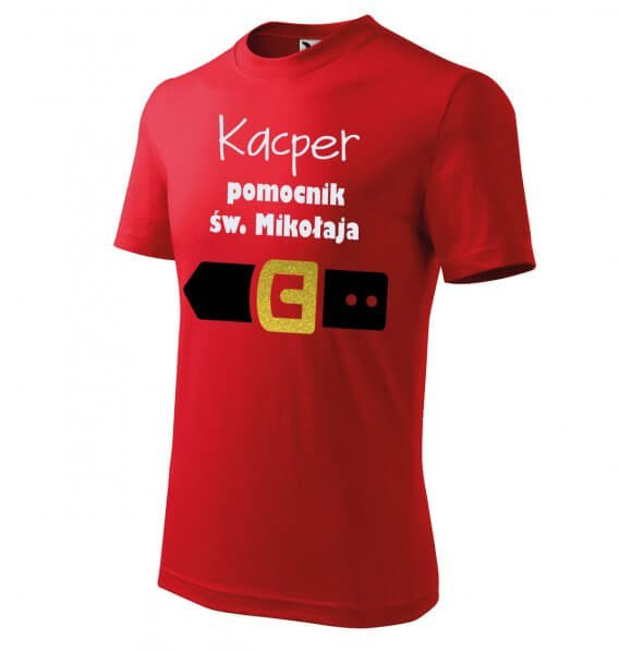 "Pomocnik św. Mikołaja" Koszulka dziecięca krótki rękaw świąteczna Moocha czerwony