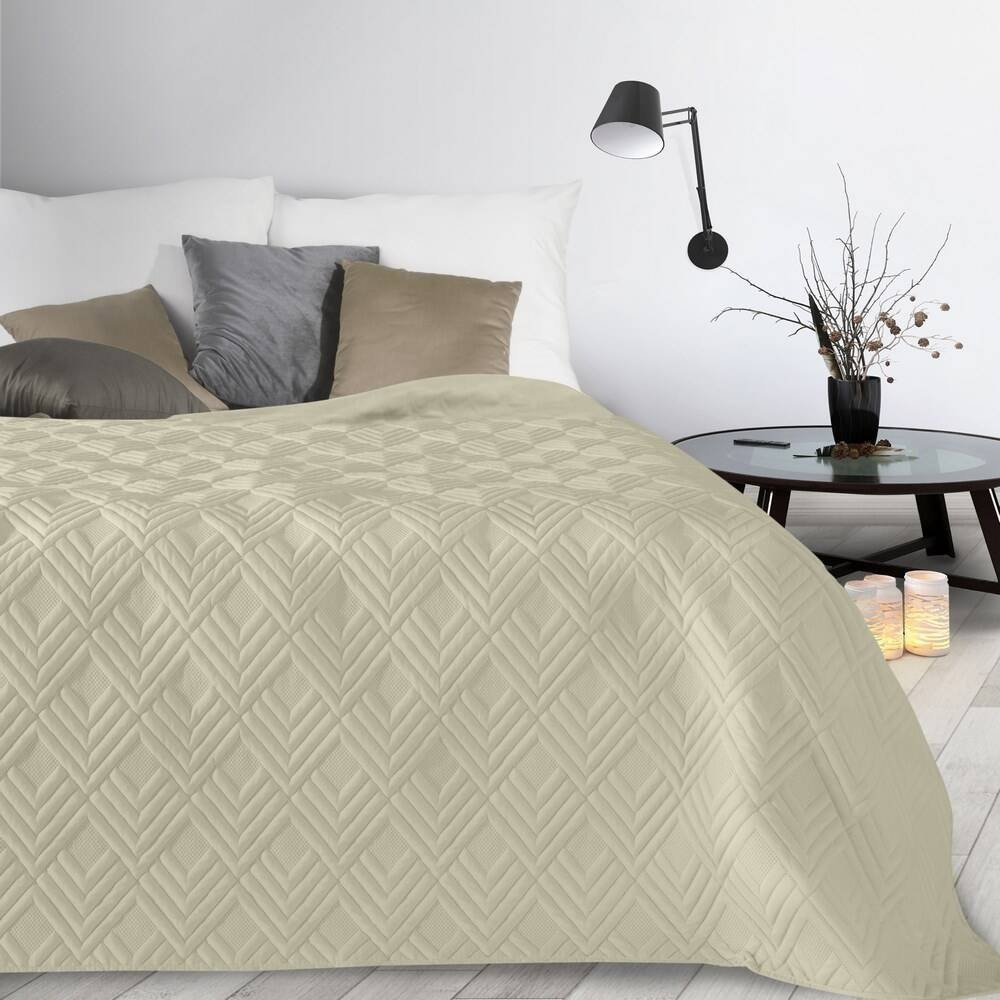 Narzuta wykonana jest z materiału przypominającego do złudzenia tkaninę bawełnianą. Jest miękka, przyjemna w dotyku, a dodatkowym jej walorem estetycznym jest element charakterystycznego przepikowanego wzoru w kwiaty na całej powierzchni, który został wykonany metodą hot press.