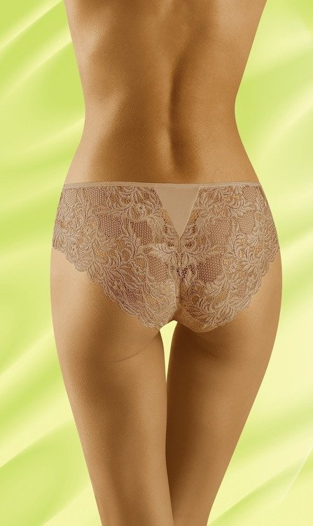 Efektowne figi damskie zostały  wykonane z ażurowej koronki o kwiatowym motywie. Subtelnie podkreślają linię bioder oraz zapewniają komfort i wygodę dzięki płaskim szwom.