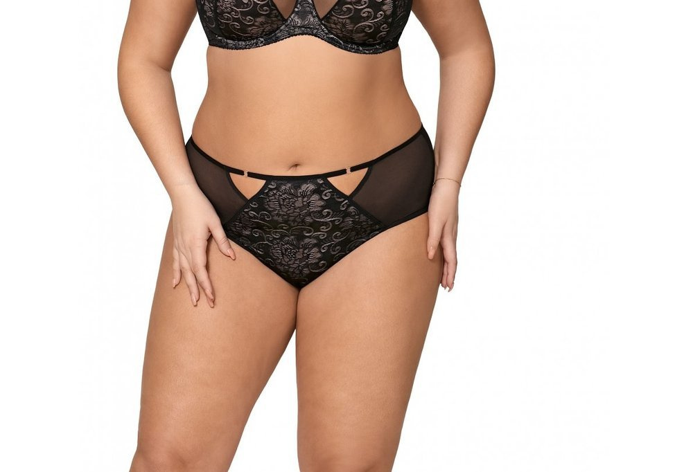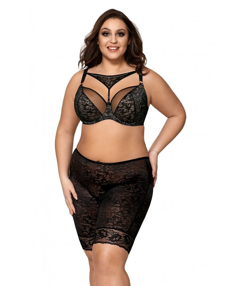Efektowne koronkowe figi damskie z długimi nogawkami.