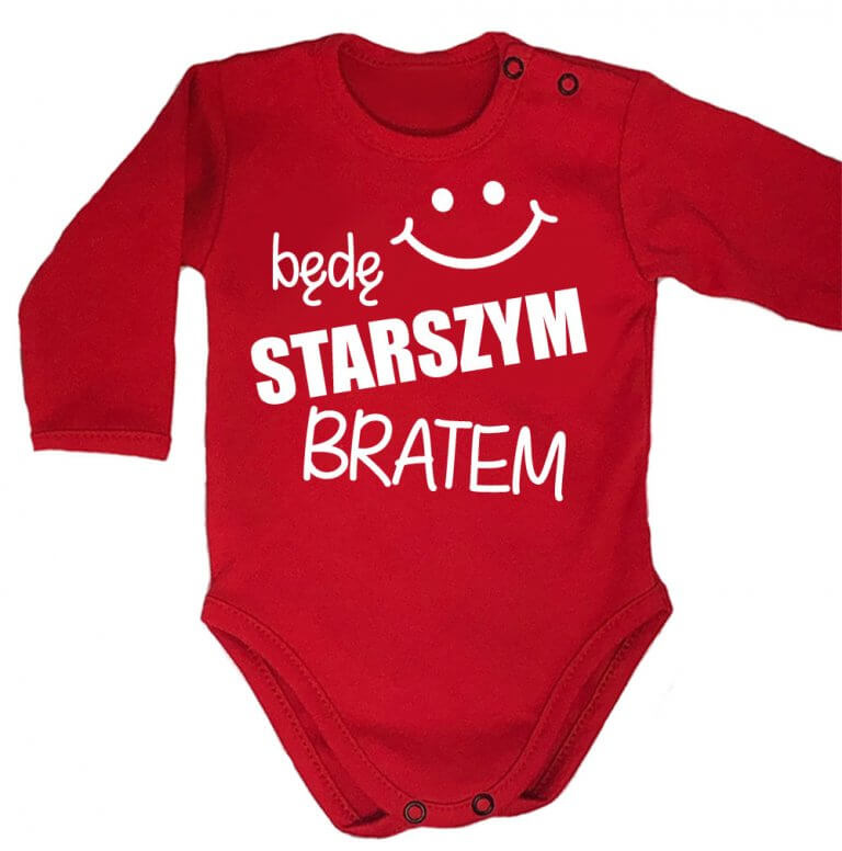 "Będę STARSZYM bratem v2" Body długi rękaw Moocha czerwony