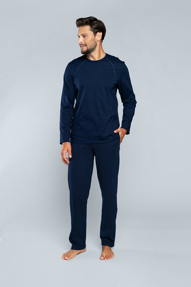 Niko Piżama Męska długi rękaw, długie spodnie Italian Fashion- granat