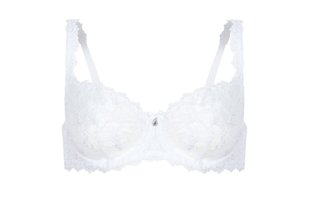 Romantyczny i zmysłowy biustonosz soft typu balconette doskonale unosi, zbiera i odsłania biust do dekoltu. Został wykonany z pięknego, włoskiego haftu Ricamificio Di Fagnano oraz delikatnych dzianin. Połyskująca ozdoba umieszczona miedzy miseczkami dodaje całości niezwykłego uroku.