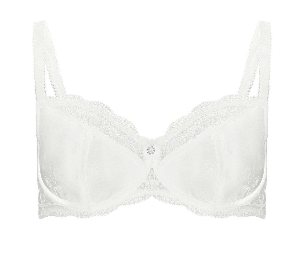 Klasyczny i elegancki biustonosz typu semi-padded. Bardzo dobrze stabilizuje i zbiera nawet mniej jędrny biust. Jest on wykonany z wysokiej jakości włoskiej satyny i koronki,  natomiast środek zdobi delikatna kokardka z ozdobą. Kolekcja ta zachwyca swoim subtelnym, kwiatowym wzorem i ciekawym designem.