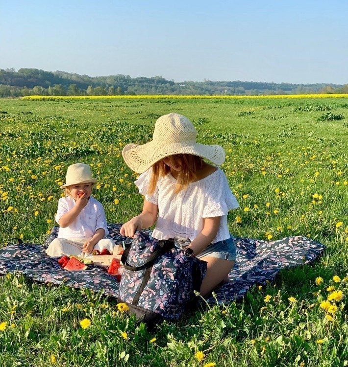 Jedna strona Maty Piknikowej wykonana jest z najwyższej jakości bawełny. Środek to lekka, silikonowa włóknina zapewniająca miękkość i izolację od twardego podłoża. Spodnia część to mocna, impregnowana tkanina, dzięki której nawet poranna rosa, czy mokry piasek nie przeszkodzą w dobrej zabawie :)