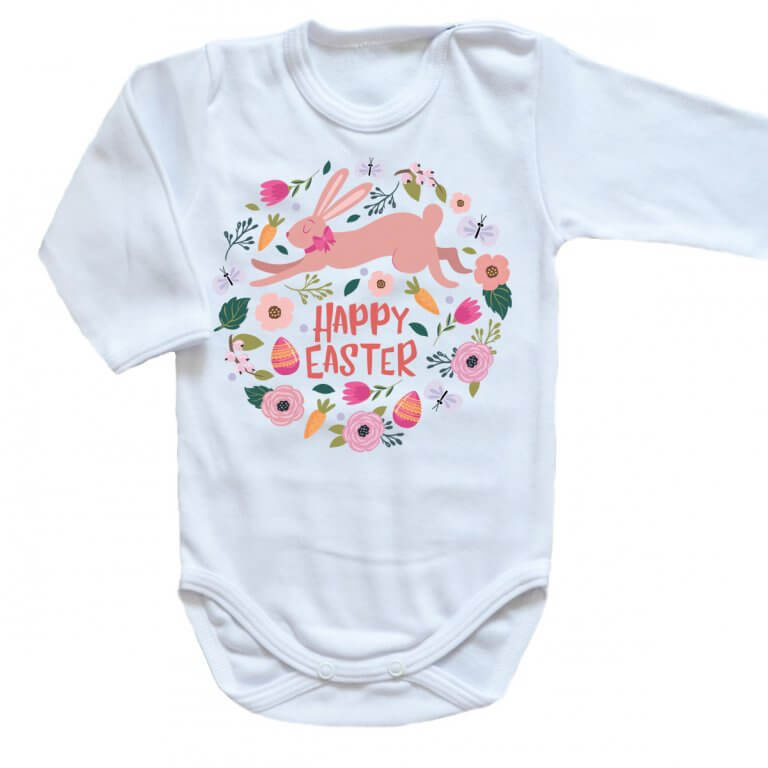 "HAPPY EASTER z zajączkiem" Body długi rękaw Moocha biały
