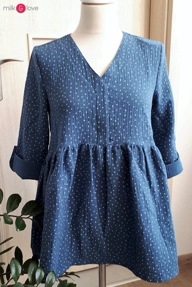 Mother Nature tunika z muślinu organicznego Milk&Love indygo w kropki
