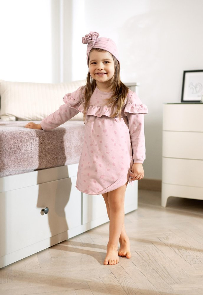Sukienka posiada wszytą uroczą falbankę. Sukienka dziecięca idealna na spacery oraz zabawę na placu zabaw.