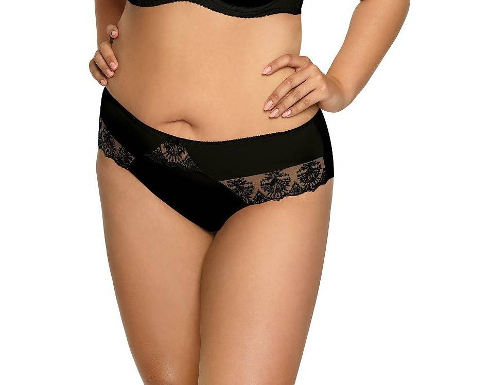 Górna linia wykończona efektowną koronką o kwiatowym motywie.