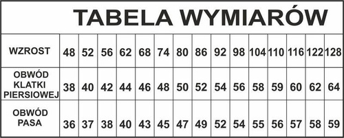 | Rozmiar | Obwód klatki piersiowej | Obwód pasa |