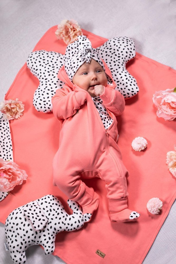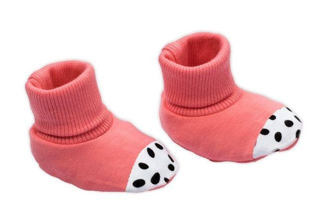 Komplet bucików, będący idealnym i zarazem praktycznym uzupełnieniem ubranek z kolekcji w tej kolorystyce. Uszyty ze 100% bawełny posiadającej certyfikat Oeko-Tex Standard 100 Tekstylia godne zaufania. Model ma wszyty bezuciskowy ściągacz