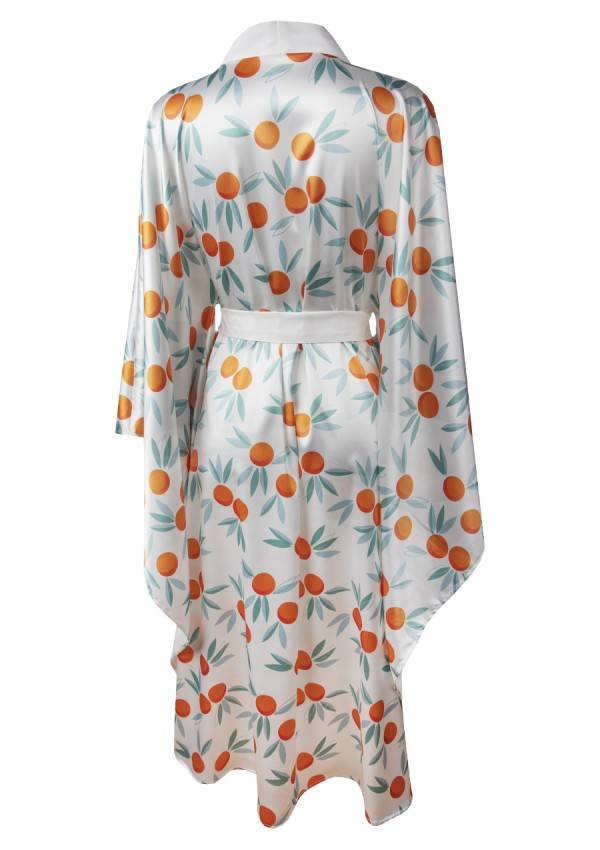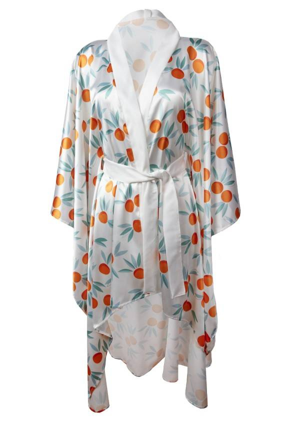 Szlafrok wykonany jest z przyjemnej w noszeniu, jak i dotyku satyny.