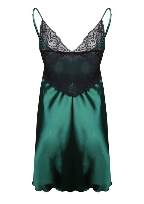 W takim razie jesteś w doskonałym miejscu! Halka Sophia będzie idealna na wszelkie romantyczne uniesienia. Haleczka wykonana jest według klasycznego kształtu - sięga przed kolana oraz posiada cienkie, regulowane ramiączka. Góra halki - z przodu, jak i z tyłu uszyta jest z przezroczystej czarnej koronki - w miejscu miseczek doszyty jest specjalny materiał, przysłaniający biust. Dół haleczki stanowi zwiewna, przyjemna w noszeniu, jak i dotyku satyna. Halka Sophia dostępna jest w kolorze butelkowej zieleni. Kolor ten doskonale współgra z czarnym kolorem koronki. Na środku biustu znajduje się malutki, ozdobny diamencik.