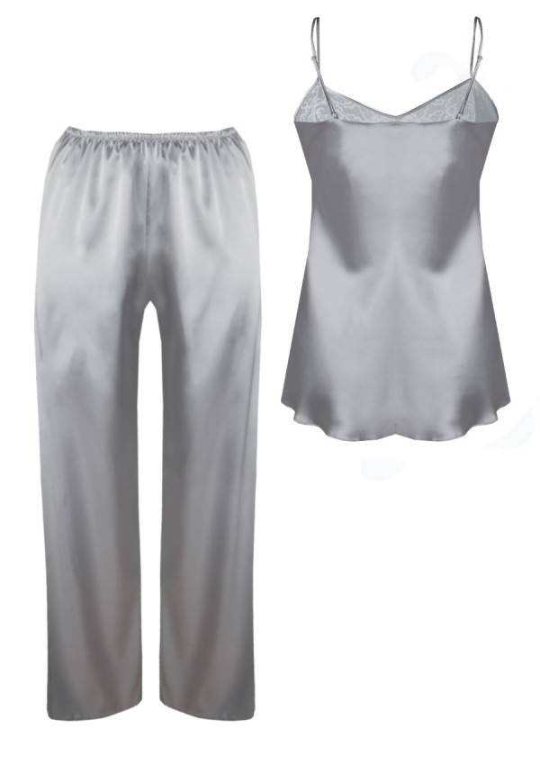 Z kolei ramiączka koszulki z łatwością da się regulować. Dzięki temu każda kobieta może dopasować bieliznę do swoich kształtów. Spodenki są na elastycznej gumce. Satynowy komplet Avery dostępny jest w kolorze szarym.