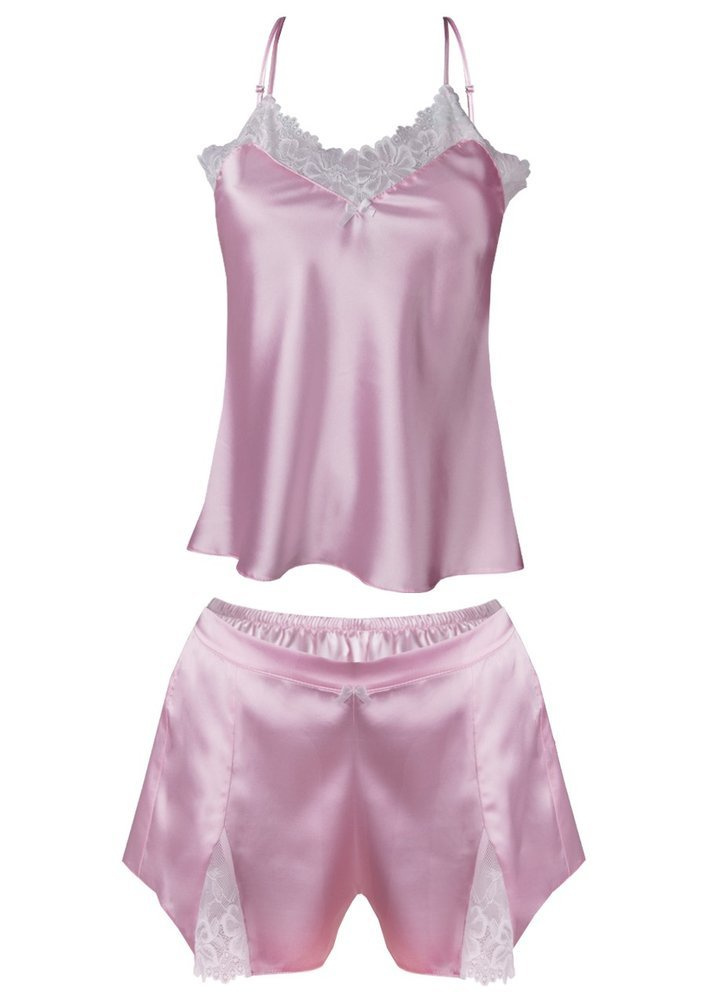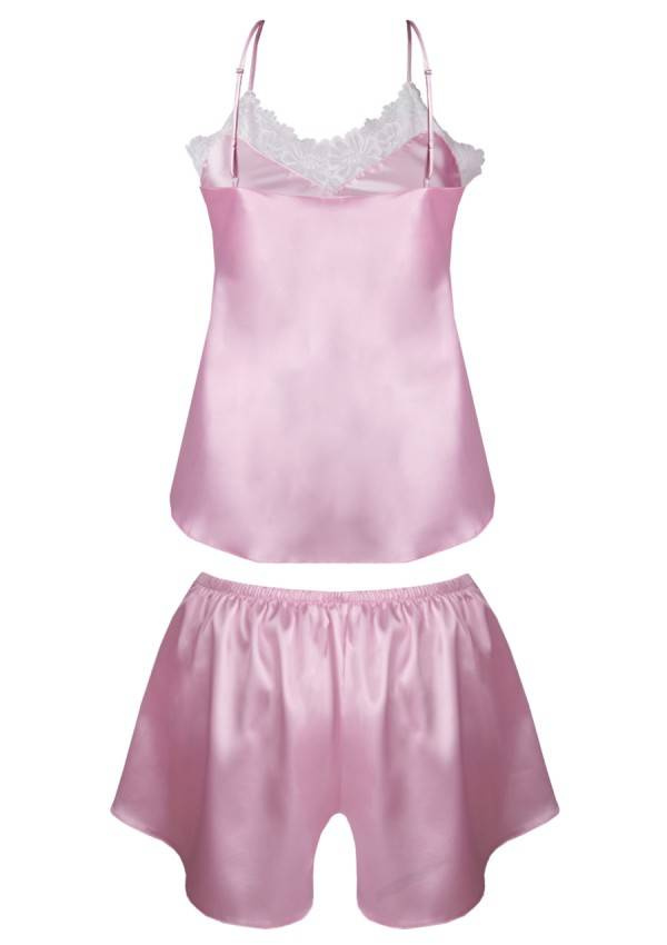 Góra koszulki obszyta jest białą koronką w kwiatowy wzór. Na środku biustu oraz na górze spodenek doszyta jest malutka, urocza kokardka. Ramiączka koszulki posiadają możliwość regulowania, dzięki czemu każda kobieta może dopasować ją do swoich kształtów. Spodenki posiadają koronkowe wstawki - znajdują się one z przodu na nogawkach. Spodenki są na elastycznej gumce.