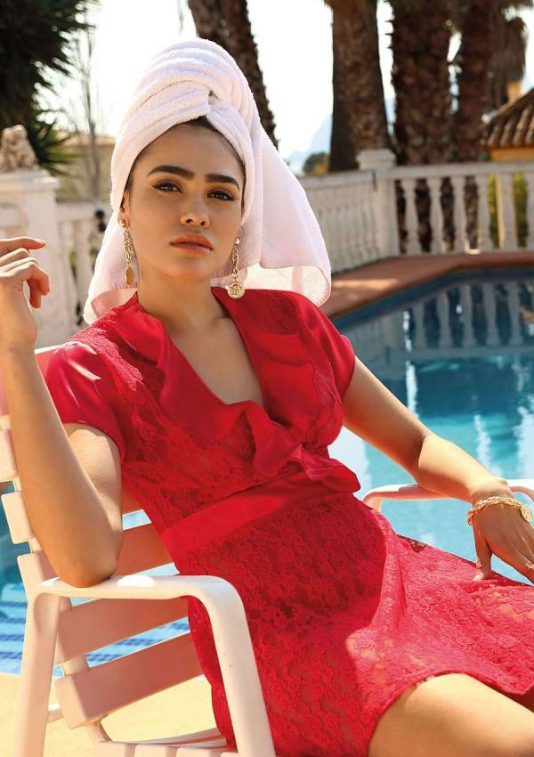Planujesz romantyczny wieczór z ukochanym? W takich momentach idealnie sprawdzi się Podomka Mia. Zmysłowa, komfortowa, a jednocześnie pełna seksapilu. Ta podomka mieści w sobie wszystkie upragnione przez kobiety cechy. Podomka Mia składa się z obcisłej, dłuższej koszulki oraz stringów. Obydwa elementy bielizny wykonane są z kwiecistej koronki. Tylko rękawki, falbanka przy dekolcie oraz pasek podkreślający talię są z satynowego materiału