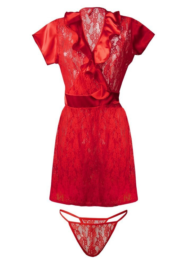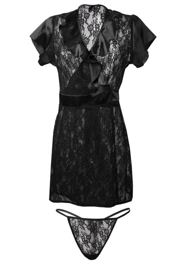 Planujesz romantyczny wieczór z ukochanym? W takich momentach idealnie sprawdzi się Podomka Mia. Zmysłowa, komfortowa, a jednocześnie pełna seksapilu. Ta podomka mieści w sobie wszystkie upragnione przez kobiety cechy. Podomka Mia składa się z obcisłej, dłuższej koszulki oraz stringów. Obydwa elementy bielizny wykonane są z kwiecistej koronki. Tylko rękawki, falbanka przy dekolcie oraz pasek podkreślający talię są z satynowego materiału