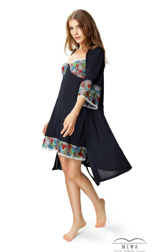 Peniuar Hawaii to energetyczna, kolorowa nowość z kolekcji VISTI. Idealny do okrycia się wczesnym wieczorem lub zaraz po przebudzeniu. Dostępny w kolorze czarnym z ozdobnym wielobarwnym haftem.