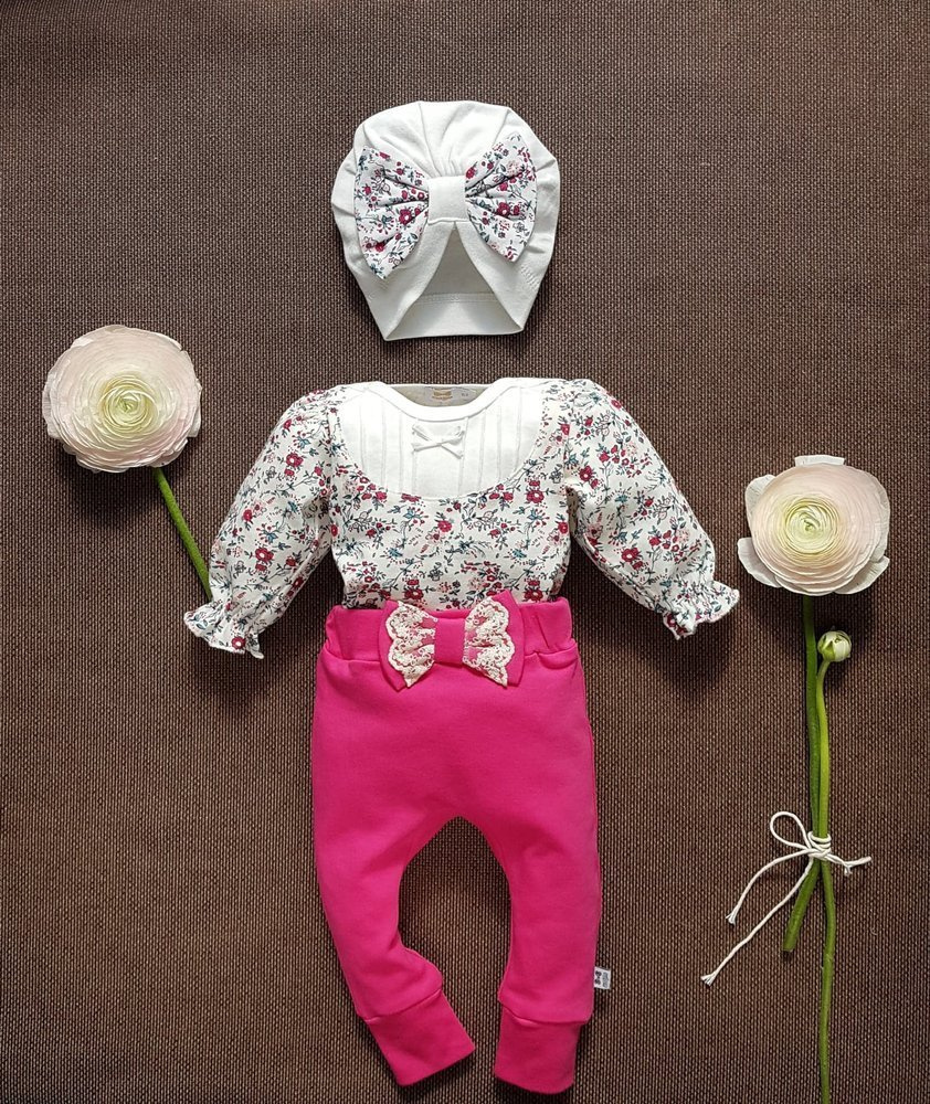Zestaw niemowlęcy, który składa się z czapeczki, body i spodni. Każdy z produktów jest pakowany osobno. Ubranka wykonane ze 100% mięciutkiej bawełny zapewnią zadowolenie każdego z naszych Milusińskich.